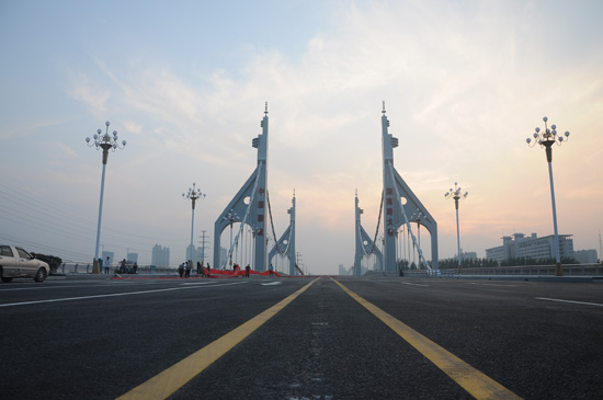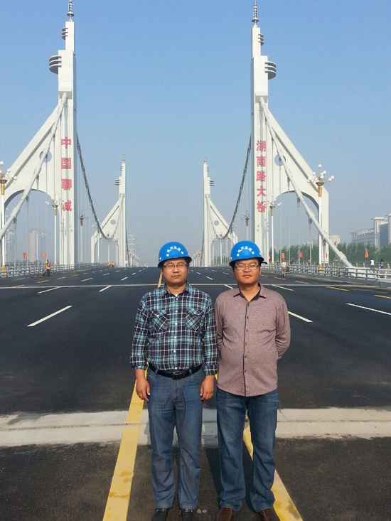 山東省德州市交通工程監(jiān)理公司承監(jiān)的聊城市湖南路大橋全長316.86米,橋梁總寬51.5米;主橋采用雙索面無背鎖斜拉橋,引橋采用預(yù)應(yīng)力混凝土簡支組合箱梁。本項目于2015年5月1日正式通車運營,總監(jiān)理工程師陳剛和安全監(jiān)理工程師武俊參加了通車剪彩儀式 。