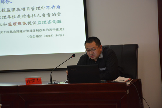 1月4-5日,監(jiān)理公司在集團公司會議室召開2017年度監(jiān)理業(yè)務(wù)培訓(xùn)會議,有100多名現(xiàn)場監(jiān)理人員參加本次培訓(xùn)活動。本次培訓(xùn)采取內(nèi)部交流和專家授課的形式進行,內(nèi)部交流橋梁、道路等施工監(jiān)理經(jīng)驗,宣貫新《監(jiān)理規(guī)范》,聘請交通部試驗專家解先榮老師傳授試驗檢測工作重點。通過培訓(xùn),現(xiàn)場監(jiān)理人員豐富了業(yè)務(wù)知識,經(jīng)專家指點后掃除了一些試驗檢測盲點,培訓(xùn)取得預(yù)期效果。