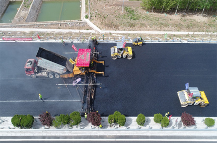 京臺(tái)高速高性能鋼渣抗滑磨耗層(上面層)試驗(yàn)段攤鋪施工觀摩交流